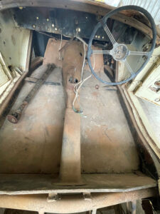 The car has been in Mudgee for quite a few years on a friend’s farm, where it has been living in one of his sheds. He has worked on lots of cars and bought the MGA as a project to do with his daughter. He did quite a bit of work on the body of the car but as time went on, the daughter found other interests and the project got put on the back burner.